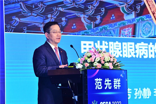 MMC創(chuàng)始人、中國內(nèi)分泌代謝病專科聯(lián)盟主席、上海交通大學(xué)醫(yī)學(xué)院附屬瑞金醫(yī)院院長、中國工程院寧光院士在致辭中說道,“今年,MMC實(shí)現(xiàn)了“雙1000”目標(biāo),即:“建立1000家MMC中心,管理1000萬糖尿病患者”當(dāng)中的第一個(gè)目標(biāo)。這離不開在座的每一位同道的信任、堅(jiān)持和付出!全國MMC就是一個(gè)大家庭,所有的醫(yī)護(hù)人員同心協(xié)力,共同扮演著代謝病患者的健康衛(wèi)士角色。在大家的共同努力下,患者的糖化血紅蛋白達(dá)標(biāo)率和代謝指標(biāo)綜合達(dá)標(biāo)率均顯著提升,達(dá)到或超越了國際先進(jìn)水平。MMC的管理模式和系列研究成果也得到了國際國內(nèi)同行的高度肯定,同時(shí),MMC即將落戶粵港澳大灣區(qū),為打造健康“一帶一路”打下重要基礎(chǔ)。而這些都進(jìn)一步標(biāo)志著MMC在積極響應(yīng)國家“健康中國”戰(zhàn)略的同時(shí)為我國代謝慢病管理帶來了重大變革和貢獻(xiàn)。” 大會(huì)舉行了隆重的MMC突破1000家盛典,中國工程院范先群院士、中國工程院寧光院士、朱大龍教授、趙家軍教授、嚴(yán)勵(lì)院長、谷衛(wèi)教授,國家標(biāo)準(zhǔn)化代謝性疾病管理中心省級(jí)分中心代表:劉萍教授、秦映芬教授、單忠艷教授、鄭超教授、吳勝利教授、陳蕾教授、王育璠教授、杜建玲教授、勵(lì)麗教授上臺(tái),優(yōu)秀分中心代表:鄭啟東教授、戴元成教授、董其娟教授、徐鳳梅教授、姜冉華教授、顧雪疆教授、唐榮教授、齊敬霄教授,上海智眾醫(yī)療科技有限公司 CEO李振杰先生,阿斯利康商業(yè)創(chuàng)新執(zhí)行總監(jiān)王健先生一同上臺(tái)參與1000家醫(yī)院的落地慶典。范先群院士:甲狀腺眼病的發(fā)生機(jī)制和治療進(jìn)展